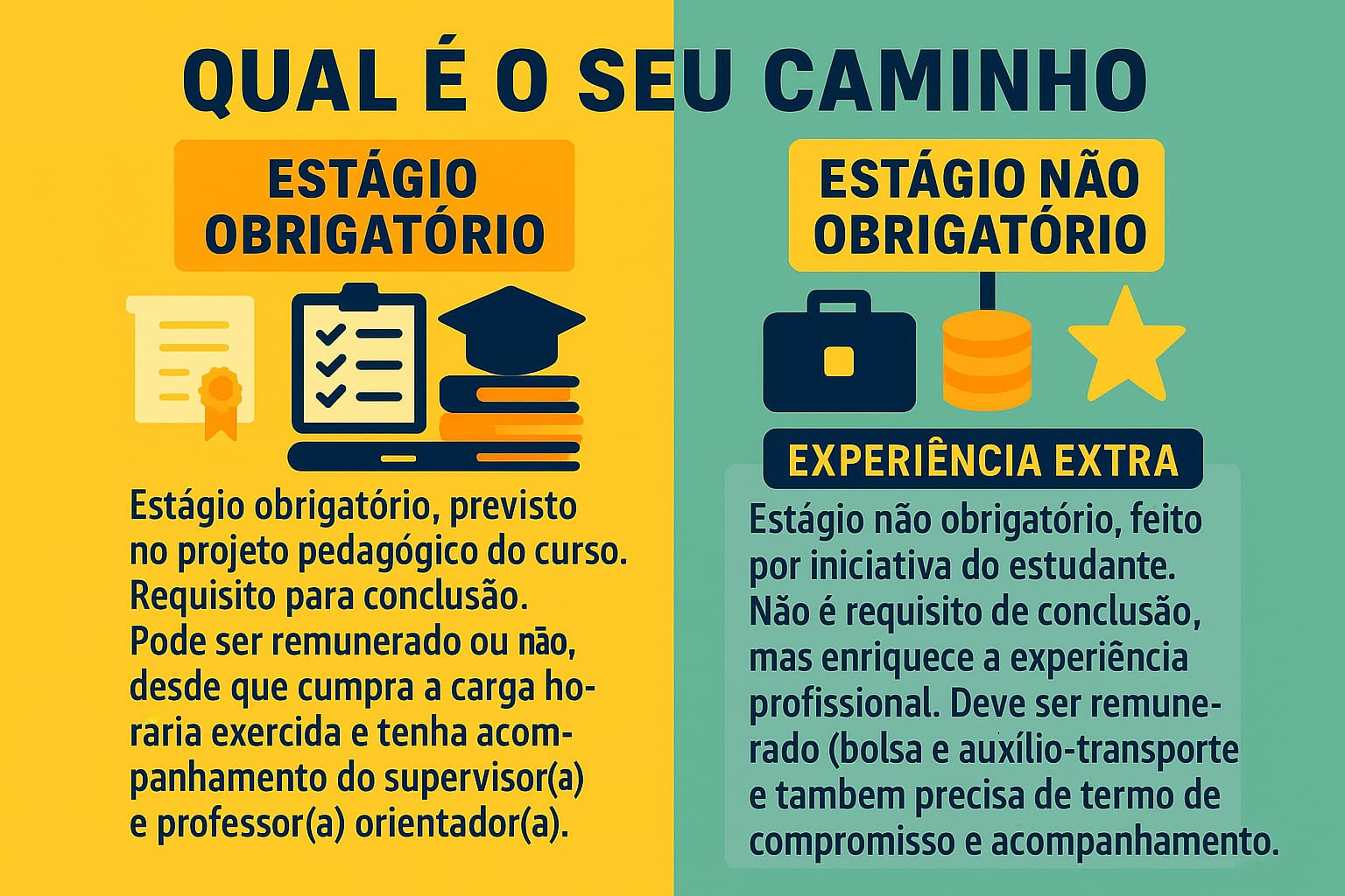 O estágio pode ser obrigatório conforme definido no Projeto Pedagógico do Curso (PPC), cuja carga horária é requisito para aprovação e obtenção do diploma, conforme o § 1º do art. 2º da Lei nº 11.788/2008, e pode ser também não obrigatório quando desenvolvido como atividade opcional, acrescida à carga horária regular e obrigatória.